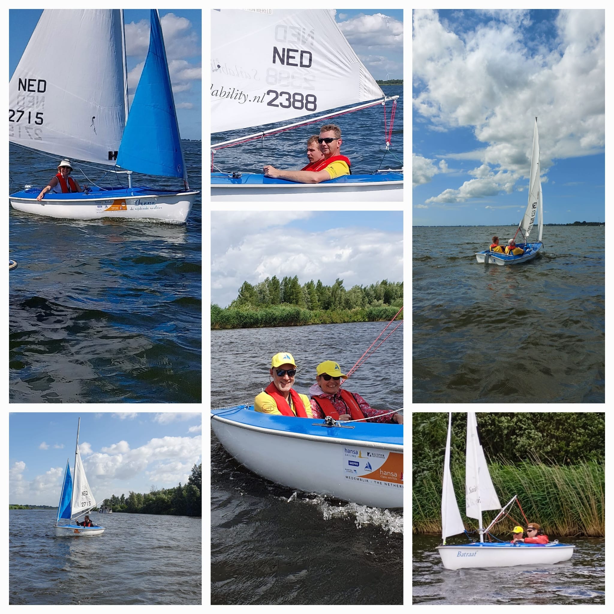 De enthousiaste groep vrijwilligers, zorgt voor gezellige zeildagen waarbij iedereen veilig aan boord wordt begeleid om heerlijk te genieten van de vrijheid die het zeilen biedt. Als je wil dan kan je zelfstandig (leren) zeilen of, als je liever niet alleen in de boot zit, gaat er een vrijwilliger/instructeur met je mee. Er zijn altijd begeleidingsbootjes op het water om – waar nodig – te assisteren.